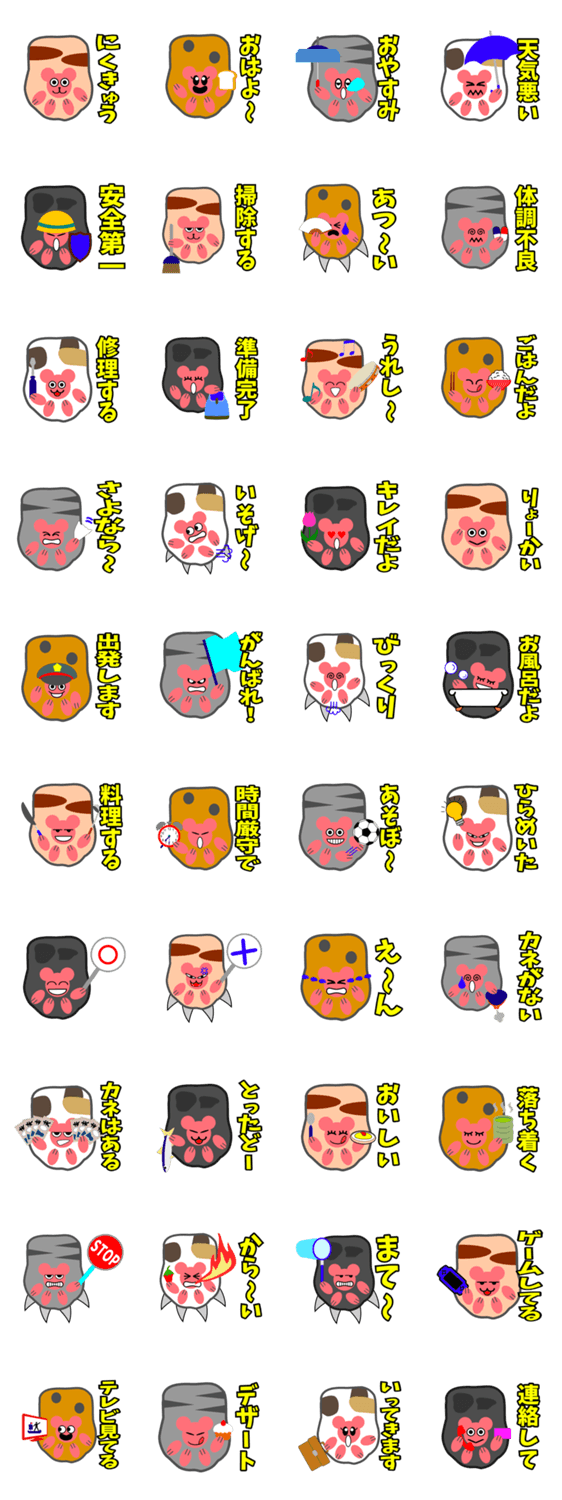 にくきゅう KEDAMONO コメントをどうぞ 猫や犬の肉球です。ねこ、いぬの肉球はよく見ると熊に見えます。肉球ベアをよろしく。周りのネコ、イヌの肉球にも顔が書いてあるかも。電車好きで帽子を被っている時も。 このスタンプどう思う?!↓クリックで投票♪好き (0)かわいい (0)かっこいい (0)おもしろい (0)使いやすそう (0)欲しい (0)萌え (0)ほっこりする (0)おしゃれ (0)ゆるい (0)こわい (0)ウザい (0)キモい (0)ムカつく (0)持ってる (0)癒される (0)セクシー (0)個性的 (0)私は買わない (0)誰かプレゼントして! (0) 購入・プレゼントする Facebookでシェア Twitterでシェア