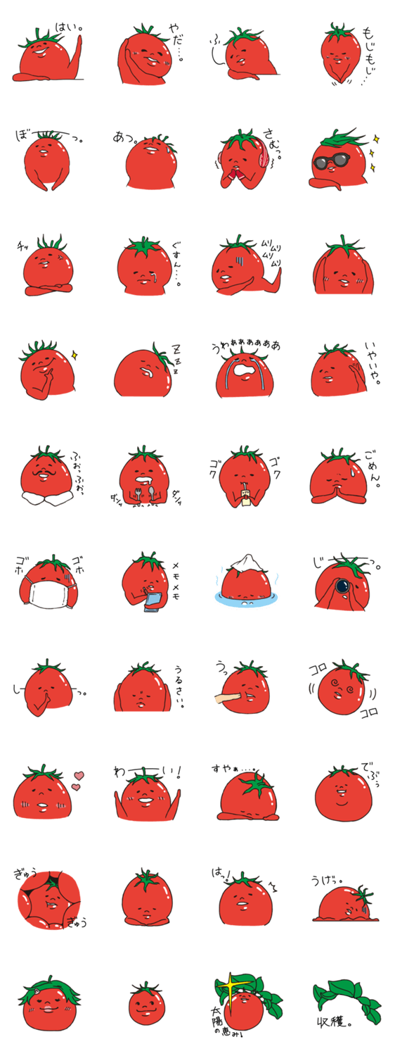 トマオ ma-mo コメントをどうぞ トマトのキャラクターです。トマト好きな方にも。トマト嫌いな方にも。 このスタンプどう思う?!↓クリックで投票♪好き (0)かわいい (0)かっこいい (0)おもしろい (0)使いやすそう (0)欲しい (0)萌え (0)ほっこりする (0)おしゃれ (0)ゆるい (0)こわい (0)ウザい (0)キモい (0)ムカつく (0)持ってる (0)癒される (0)セクシー (0)個性的 (0)私は買わない (0)誰かプレゼントして! (0) 購入・プレゼントする Facebookでシェア Twitterでシェア