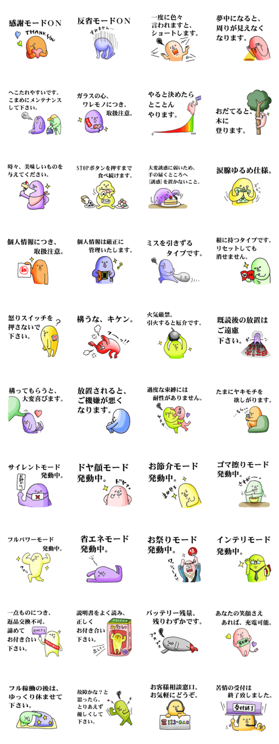 『わたし』取扱説明書 -TORISETSU- つるつる コメントをどうぞ この度は『わたし』とお付き合い頂き、誠にありがとうございます。『わたし』にはご使用上の注意が多数ございます。取扱説明書をよく読み、正しくお付き合いください。 このスタンプどう思う?!↓クリックで投票♪好き (0)かわいい (0)かっこいい (0)おもしろい (0)使いやすそう (0)欲しい (0)萌え (0)ほっこりする (0)おしゃれ (0)ゆるい (0)こわい (0)ウザい (0)キモい (0)ムカつく (0)持ってる (0)癒される (0)セクシー (0)個性的 (0)私は買わない (0)誰かプレゼントして! (0) 購入・プレゼントする Facebookでシェア Twitterでシェア