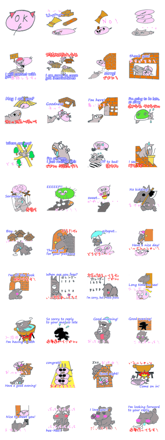 あいさつするかわいい狼とおもしろいこぶた Assoupissement Haru コメントをどうぞ 可愛い子豚やオオカミの動物キャラクターのやり取りを使って、友達や女の子と「お疲れ・おめでとう」などの挨拶をキッカケに日本語と英語の日常会話を楽しんでね! このスタンプどう思う?!↓クリックで投票♪好き (0)かわいい (0)かっこいい (0)おもしろい (0)使いやすそう (0)欲しい (0)萌え (0)ほっこりする (0)おしゃれ (0)ゆるい (0)こわい (0)ウザい (0)キモい (0)ムカつく (0)持ってる (0)癒される (0)セクシー (0)個性的 (0)私は買わない (0)誰かプレゼントして! (0) 購入・プレゼントする Facebookでシェア Twitterでシェア