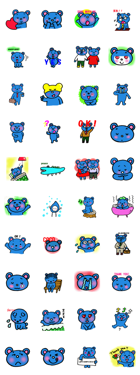 あおくまくん。 えり コメントをどうぞ えりが、かわいいあおくまくんたちを描きました。仲良くしてくださいね。 このスタンプどう思う?!↓クリックで投票♪好き (0)かわいい (0)かっこいい (0)おもしろい (0)使いやすそう (0)欲しい (0)萌え (0)ほっこりする (0)おしゃれ (0)ゆるい (0)こわい (0)ウザい (0)キモい (0)ムカつく (0)持ってる (0)癒される (0)セクシー (0)個性的 (0)私は買わない (0)誰かプレゼントして! (0) 購入・プレゼントする Facebookでシェア Twitterでシェア