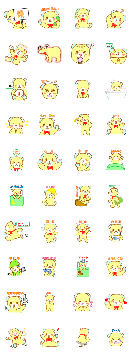 あおみみくまくま kiki コメントをどうぞ 青い耳の可愛いくまです。「10分」「後」「連絡するね」など組み合わせ方によってスタンプだけでメッセージを送ることができます。 このスタンプどう思う?!↓クリックで投票♪好き (0)かわいい (0)かっこいい (0)おもしろい (0)使いやすそう (0)欲しい (0)萌え (0)ほっこりする (0)おしゃれ (0)ゆるい (0)こわい (0)ウザい (0)キモい (0)ムカつく (0)持ってる (0)癒される (0)セクシー (0)個性的 (0)私は買わない (0)誰かプレゼントして! (0) 購入・プレゼントする Facebookでシェア Twitterでシェア