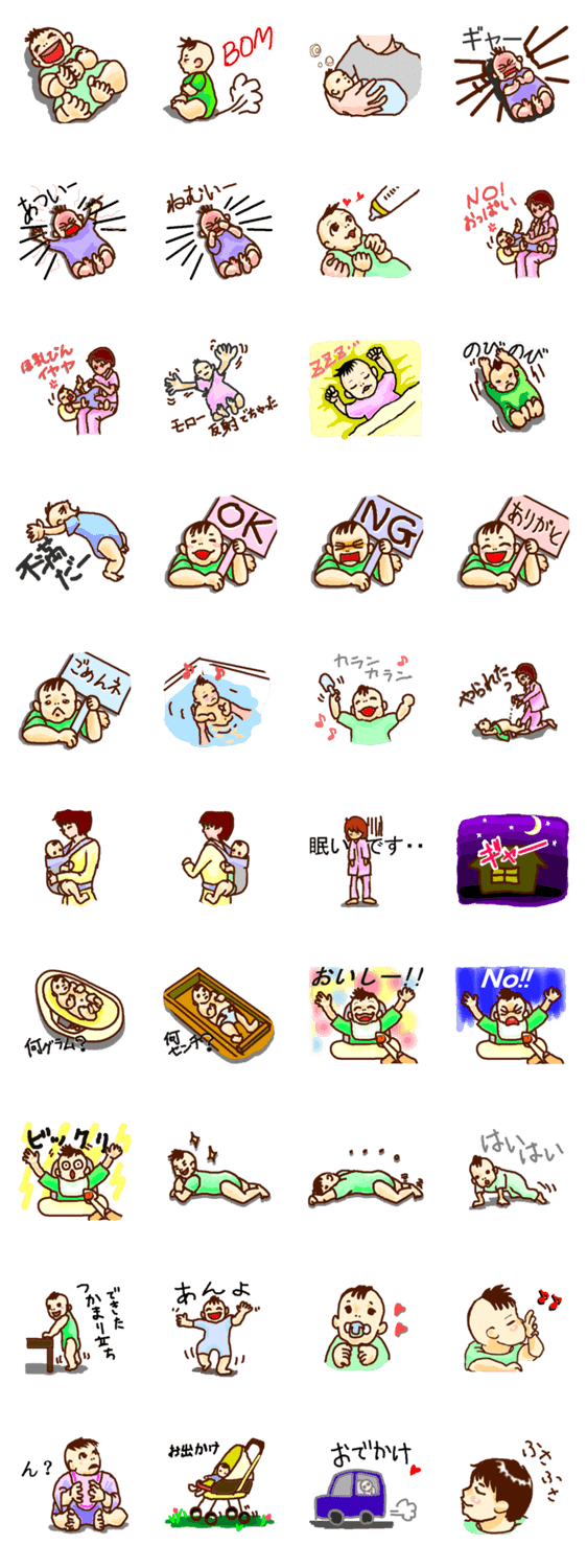 あかちゃん育児 みきぽん コメントをどうぞ 現在育児休暇中の新米ママが毎日お世話するかわいいわが子をモデルにしてスタンプをつくりました。わが子は現在生後5ヶ月。 このスタンプどう思う?!↓クリックで投票♪好き (0)かわいい (0)かっこいい (0)おもしろい (0)使いやすそう (0)欲しい (0)萌え (0)ほっこりする (0)おしゃれ (0)ゆるい (0)こわい (0)ウザい (0)キモい (0)ムカつく (0)持ってる (0)癒される (0)セクシー (0)個性的 (0)私は買わない (0)誰かプレゼントして! (0) 購入・プレゼントする Facebookでシェア Twitterでシェア