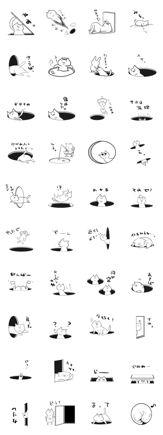 あなねこ もね コメントをどうぞ 穴の中や壁の向こうに生息している猫です。あなたのトークルームにたくさん穴を開けましょう! このスタンプどう思う?!↓クリックで投票♪好き (0)かわいい (0)かっこいい (0)おもしろい (0)使いやすそう (0)欲しい (0)萌え (0)ほっこりする (0)おしゃれ (0)ゆるい (0)こわい (0)ウザい (0)キモい (0)ムカつく (0)持ってる (0)癒される (0)セクシー (0)個性的 (0)私は買わない (0)誰かプレゼントして! (0) 購入・プレゼントする Facebookでシェア Twitterでシェア