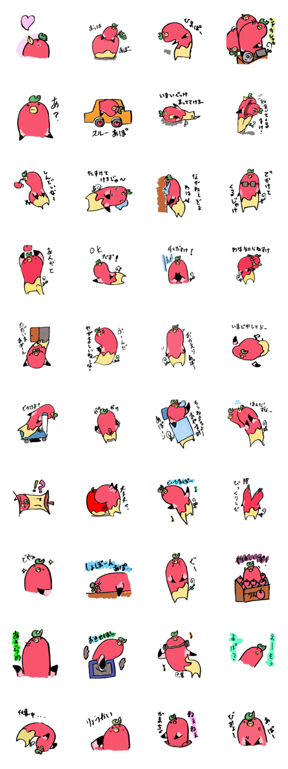 あぽーんが方言しゃべったるけよースタンプ チェリー コメントをどうぞ 方言(青森 南部)を使ってみましたスタンプです青森と言ったらリンゴなのでリンゴのキャラあぽーんを作成してみました 是非使ってください しゃべってないのもあります このスタンプどう思う?!↓クリックで投票♪好き (0)かわいい (0)かっこいい (0)おもしろい (0)使いやすそう (0)欲しい (0)萌え (0)ほっこりする (0)おしゃれ (0)ゆるい (0)こわい (0)ウザい (0)キモい (0)ムカつく (0)持ってる (0)癒される (0)セクシー (0)個性的 (0)私は買わない (0)誰かプレゼントして! (0) 購入・プレゼントする Facebookでシェア Twitterでシェア
