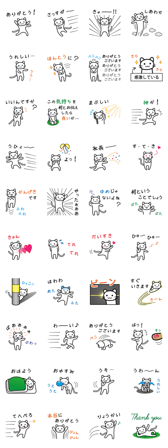ありがとう! hikida コメントをどうぞ 感謝の気持ちでいっぱいの猫(ねこ)です。あなたもこのネコを使って「ありがとう」の想いを伝えましょう。 このスタンプどう思う?!↓クリックで投票♪好き (0)かわいい (0)かっこいい (0)おもしろい (0)使いやすそう (0)欲しい (0)萌え (0)ほっこりする (0)おしゃれ (0)ゆるい (0)こわい (0)ウザい (0)キモい (0)ムカつく (0)持ってる (0)癒される (0)セクシー (0)個性的 (0)私は買わない (0)誰かプレゼントして! (0) 購入・プレゼントする Facebookでシェア Twitterでシェア