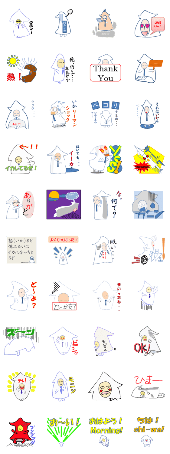 いかリーマン カブラギ ふすま コメントをどうぞ つまみのイカそうめんからイカの精霊が宿り、怒ってばかりでは体に良くないと、男にイカの能力を与えたのだった。しかしそれは不便でしかなかった。 このスタンプどう思う?!↓クリックで投票♪好き (0)かわいい (0)かっこいい (0)おもしろい (0)使いやすそう (0)欲しい (0)萌え (0)ほっこりする (0)おしゃれ (0)ゆるい (0)こわい (0)ウザい (0)キモい (0)ムカつく (0)持ってる (0)癒される (0)セクシー (0)個性的 (0)私は買わない (0)誰かプレゼントして! (0) 購入・プレゼントする Facebookでシェア Twitterでシェア