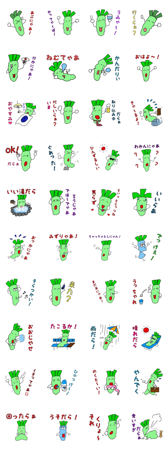 いずのわさびくん(静岡東部伊豆地方ver.) Masyurica コメントをどうぞ 伊豆の名産であるわさびのかわいいキャラクターです。静岡の東部伊豆地方で使われる方言や言葉で会話ができるスタンプです。この機会に静岡の方言を覚えてください! このスタンプどう思う?!↓クリックで投票♪好き (0)かわいい (0)かっこいい (0)おもしろい (0)使いやすそう (0)欲しい (0)萌え (0)ほっこりする (0)おしゃれ (0)ゆるい (0)こわい (0)ウザい (0)キモい (0)ムカつく (0)持ってる (0)癒される (0)セクシー (0)個性的 (0)私は買わない (0)誰かプレゼントして! (0) 購入・プレゼントする Facebookでシェア Twitterでシェア
