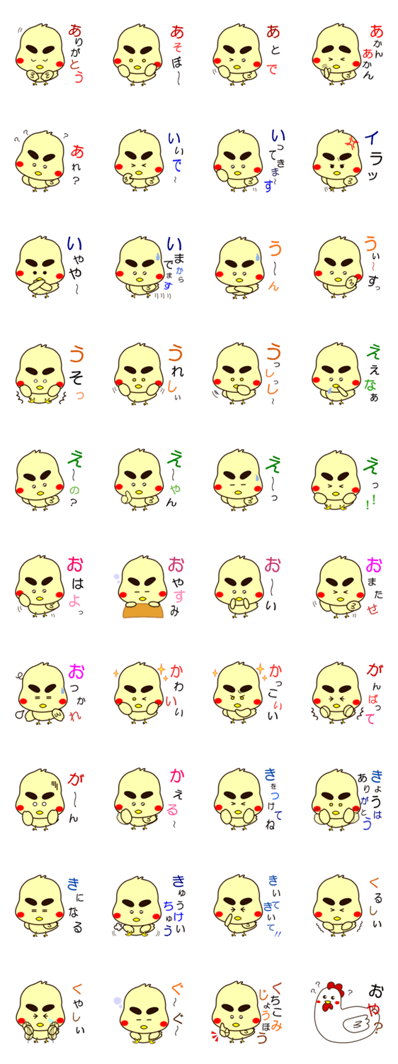 いたずらひよこのぴよ ちぃ コメントをどうぞ いたずら好きそうなひよこのスタンプです。よろしければ使ってみてください。 このスタンプどう思う?!↓クリックで投票♪好き (0)かわいい (0)かっこいい (0)おもしろい (0)使いやすそう (0)欲しい (0)萌え (0)ほっこりする (0)おしゃれ (0)ゆるい (0)こわい (0)ウザい (0)キモい (0)ムカつく (0)持ってる (0)癒される (0)セクシー (0)個性的 (0)私は買わない (0)誰かプレゼントして! (0) 購入・プレゼントする Facebookでシェア Twitterでシェア