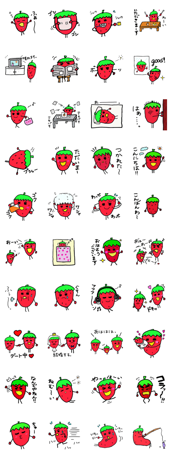 いちご君の毎日。 YAMATAKA コメントをどうぞ 愛らしいいちご君の日々を描いております。時に泣き、時に笑い。めぐる日々を毎日毎日駆け抜けているいちご君みなさんよろしくお願いします。 このスタンプどう思う?!↓クリックで投票♪好き (0)かわいい (0)かっこいい (0)おもしろい (0)使いやすそう (0)欲しい (0)萌え (0)ほっこりする (0)おしゃれ (0)ゆるい (0)こわい (0)ウザい (0)キモい (0)ムカつく (0)持ってる (0)癒される (0)セクシー (0)個性的 (0)私は買わない (0)誰かプレゼントして! (0) 購入・プレゼントする Facebookでシェア Twitterでシェア