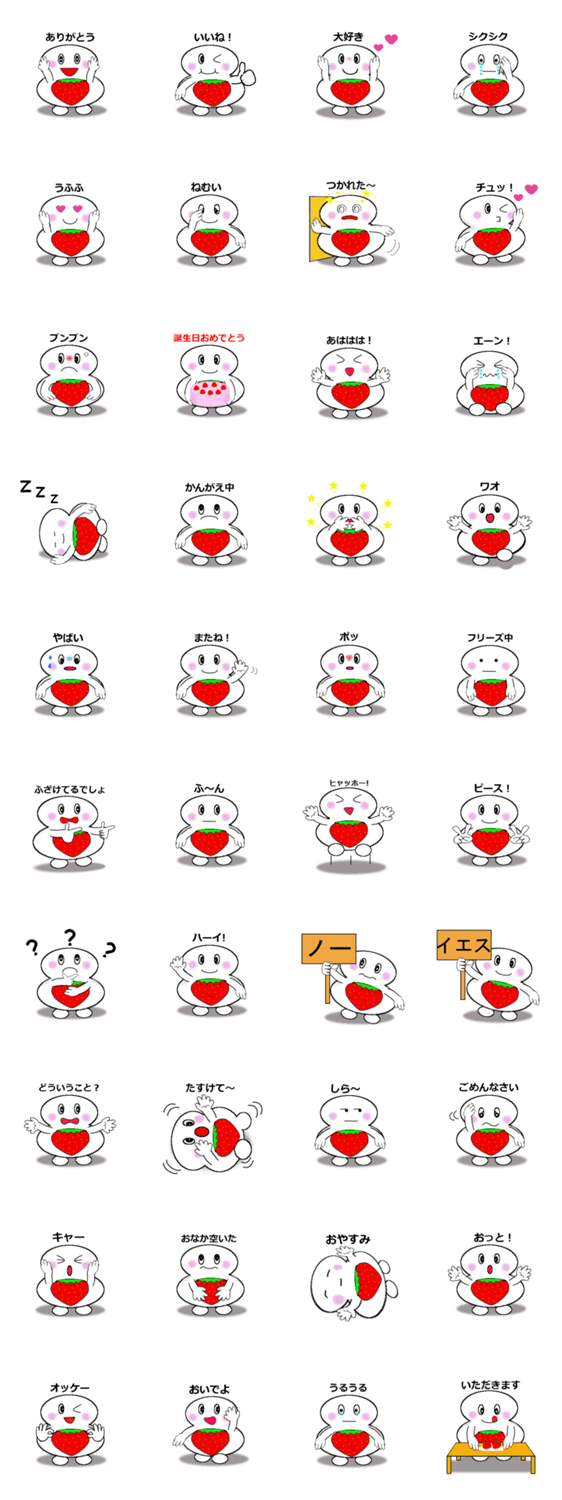 いちご大福ちゃん(日本語版) PomPAPA コメントをどうぞ いちご大福ちゃんは日本のいちご大福というお菓子をモチーフにしたキャラクターです。このスタンプは表情豊かないちご大福ちゃんを表現しています。 このスタンプどう思う?!↓クリックで投票♪好き (0)かわいい (0)かっこいい (0)おもしろい (0)使いやすそう (0)欲しい (0)萌え (0)ほっこりする (0)おしゃれ (0)ゆるい (0)こわい (0)ウザい (0)キモい (0)ムカつく (0)持ってる (0)癒される (0)セクシー (0)個性的 (0)私は買わない (0)誰かプレゼントして! (0) 購入・プレゼントする Facebookでシェア Twitterでシェア