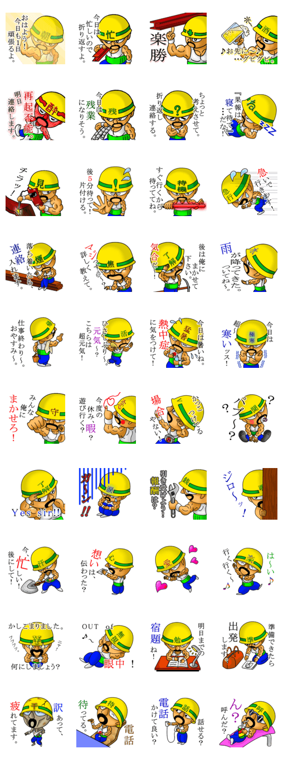 いつも忙しい現場の忠(ただし)君♪ 忍ん コメントをどうぞ 工事現場のゆる~いマッチョのお兄さん!意外とよく使うセリフをディフォルメキャラで作りました。是非♪ このスタンプどう思う?!↓クリックで投票♪好き (0)かわいい (0)かっこいい (0)おもしろい (0)使いやすそう (0)欲しい (0)萌え (0)ほっこりする (0)おしゃれ (0)ゆるい (0)こわい (0)ウザい (0)キモい (0)ムカつく (0)持ってる (0)癒される (0)セクシー (0)個性的 (0)私は買わない (0)誰かプレゼントして! (0) 購入・プレゼントする Facebookでシェア Twitterでシェア
