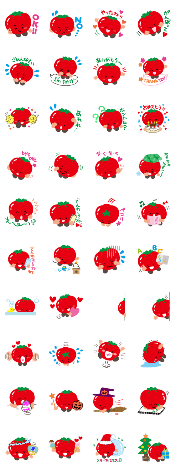 いろいろトマトちゃん じゅんぴ コメントをどうぞ 新松戸プチトマトのお友達をいつも見守ってくれるトマトちゃんです。みんなの楽しい会話の仲間に入れてね!きっとトマトちゃんがもっとハッピーにしてくれるよ! このスタンプどう思う?!↓クリックで投票♪好き (0)かわいい (0)かっこいい (0)おもしろい (0)使いやすそう (0)欲しい (0)萌え (0)ほっこりする (0)おしゃれ (0)ゆるい (0)こわい (0)ウザい (0)キモい (0)ムカつく (0)持ってる (0)癒される (0)セクシー (0)個性的 (0)私は買わない (0)誰かプレゼントして! (0) 購入・プレゼントする Facebookでシェア Twitterでシェア