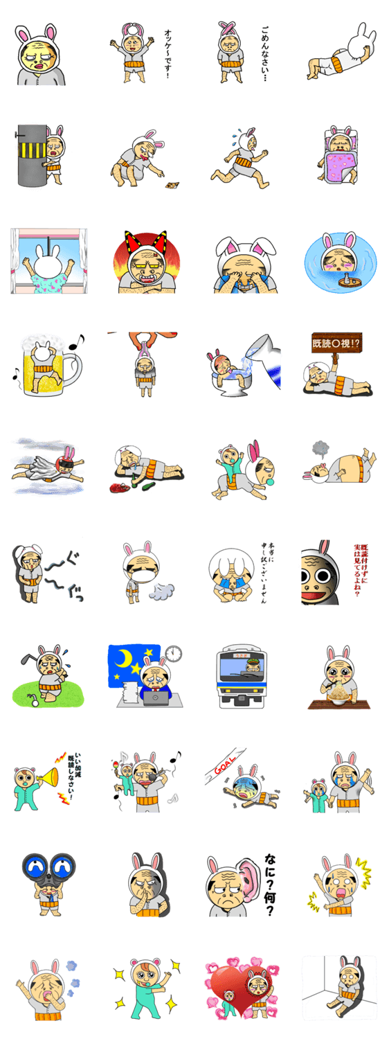 うさぎおじさん kozy コメントをどうぞ うさぎの被り物をしたミスマッチなステテコおじさん。キモカワなスタンプです。 このスタンプどう思う?!↓クリックで投票♪好き (0)かわいい (0)かっこいい (0)おもしろい (0)使いやすそう (0)欲しい (0)萌え (0)ほっこりする (0)おしゃれ (0)ゆるい (0)こわい (0)ウザい (0)キモい (0)ムカつく (0)持ってる (0)癒される (0)セクシー (0)個性的 (0)私は買わない (0)誰かプレゼントして! (0) 購入・プレゼントする Facebookでシェア Twitterでシェア
