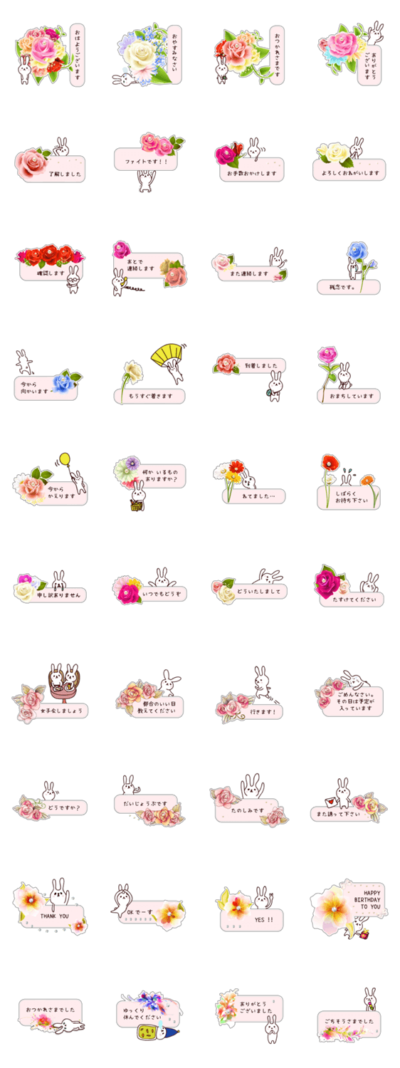 うさぎが届ける、お花のメッセージカード Kuniyo コメントをどうぞ お誘いからお断り、プライベートからビジネスシーンまでの日常会話を、お花の付箋カードを持ったうさぎが届けます。手書き花束の敬語スタンプ、使える日常会話女子編。 このスタンプどう思う?!↓クリックで投票♪好き (0)かわいい (0)かっこいい (0)おもしろい (0)使いやすそう (0)欲しい (0)萌え (0)ほっこりする (0)おしゃれ (0)ゆるい (0)こわい (0)ウザい (0)キモい (0)ムカつく (0)持ってる (0)癒される (0)セクシー (0)個性的 (0)私は買わない (0)誰かプレゼントして! (0) 購入・プレゼントする Facebookでシェア Twitterでシェア