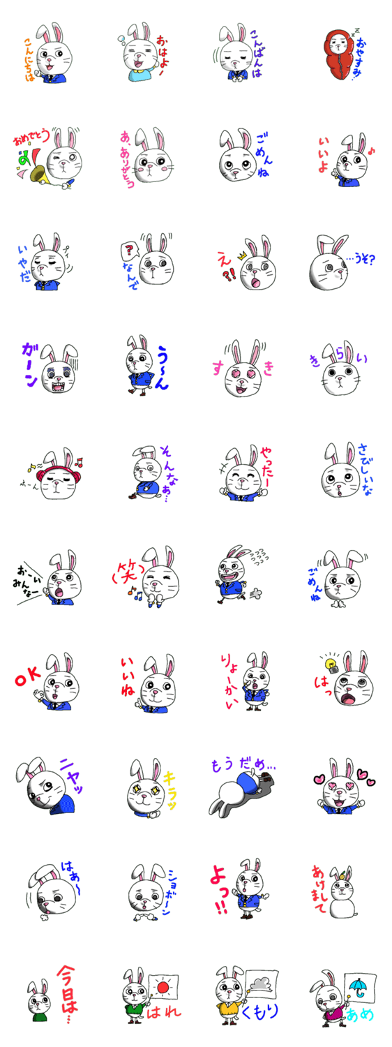 うさぎくん 日常編 JUSTICE_K コメントをどうぞ ちょっとシャイなうさぎくん。慣れてくればいろいろな表情をあなたに見せてくれるかも。いちごジャムが大好き、うさぎの男の子です。 このスタンプどう思う?!↓クリックで投票♪好き (0)かわいい (0)かっこいい (0)おもしろい (0)使いやすそう (0)欲しい (0)萌え (0)ほっこりする (0)おしゃれ (0)ゆるい (0)こわい (0)ウザい (0)キモい (0)ムカつく (0)持ってる (0)癒される (0)セクシー (0)個性的 (0)私は買わない (0)誰かプレゼントして! (0) 購入・プレゼントする Facebookでシェア Twitterでシェア