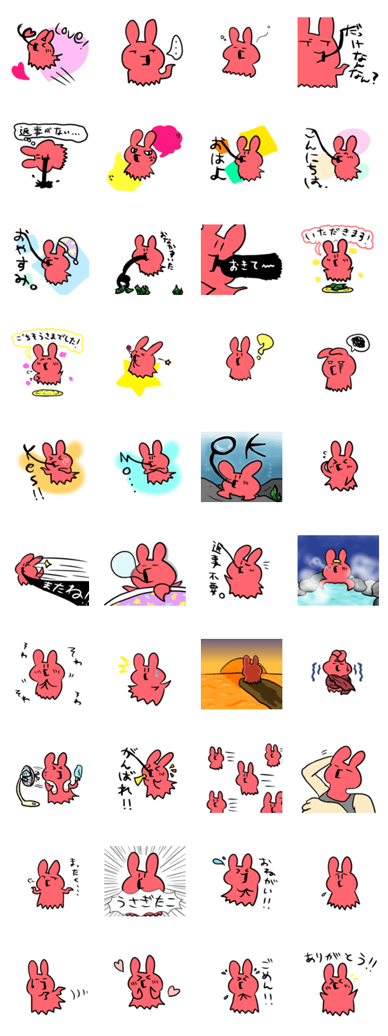 うさぎたこの日常スタンプ ミーナ コメントをどうぞ ウサギ+タコ=うさぎたこ 変で不思議なゆるい生き物です。 このスタンプどう思う?!↓クリックで投票♪好き (0)かわいい (0)かっこいい (0)おもしろい (0)使いやすそう (0)欲しい (0)萌え (0)ほっこりする (0)おしゃれ (0)ゆるい (0)こわい (0)ウザい (0)キモい (0)ムカつく (0)持ってる (0)癒される (0)セクシー (0)個性的 (0)私は買わない (0)誰かプレゼントして! (0) 購入・プレゼントする Facebookでシェア Twitterでシェア