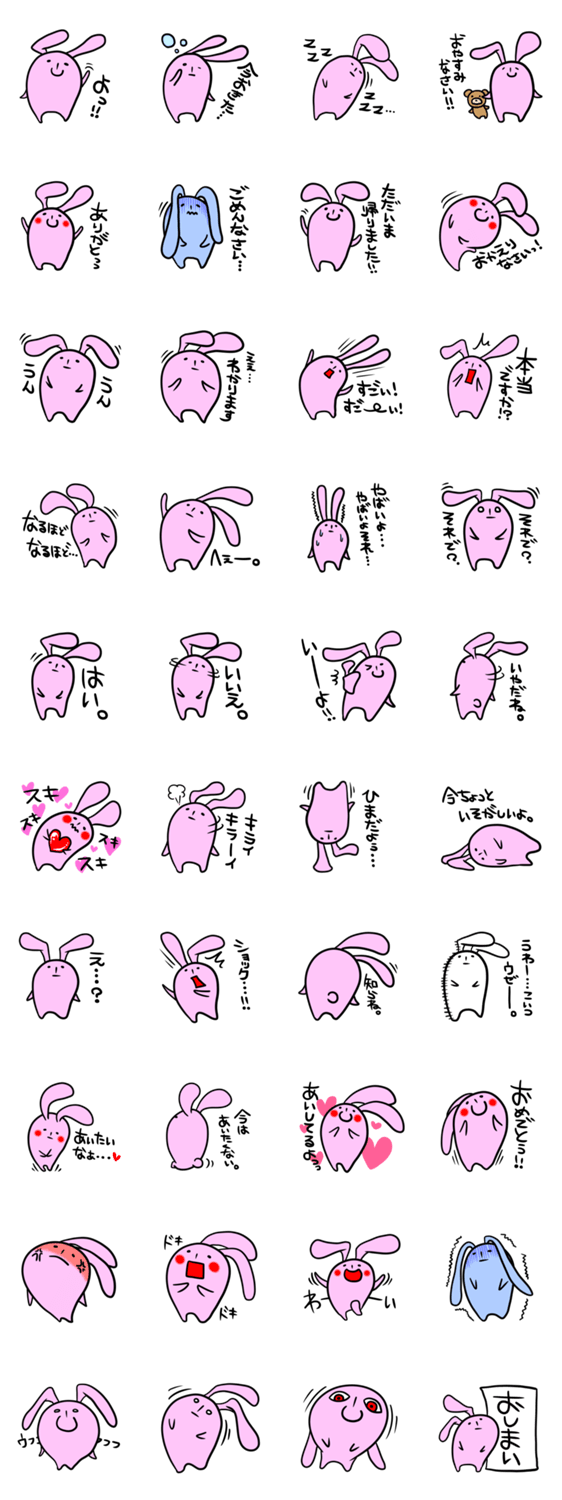 うさぎのウサ一郎。 Y's Studio コメントをどうぞ 無表情な時もあればキュートでかわいい表情を見せる時もある、シュールでゆるいシンプルなピンクのうさぎキャラ、ウサ一郎です!日常的に友達や仕事仲間達と使えますよ! このスタンプどう思う?!↓クリックで投票♪好き (0)かわいい (0)かっこいい (0)おもしろい (0)使いやすそう (0)欲しい (0)萌え (0)ほっこりする (0)おしゃれ (0)ゆるい (0)こわい (0)ウザい (0)キモい (0)ムカつく (0)持ってる (0)癒される (0)セクシー (0)個性的 (0)私は買わない (0)誰かプレゼントして! (0) 購入・プレゼントする Facebookでシェア Twitterでシェア