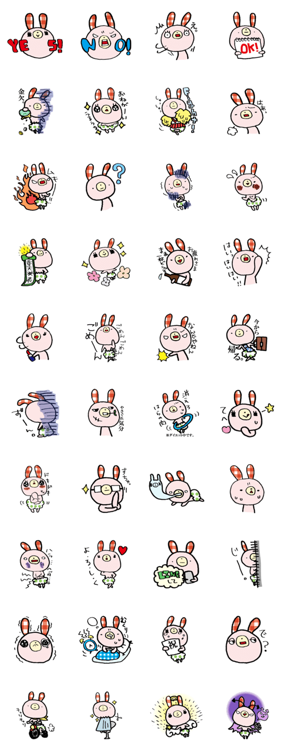 うさぎのサブちゃん sachik0 コメントをどうぞ 自分のことを人間の女の子だと思い込んでるうさぎの「サブちゃん」。3歳だけどちょっと生意気でおませなサブちゃんをあなたに。 このスタンプどう思う?!↓クリックで投票♪好き (0)かわいい (0)かっこいい (0)おもしろい (0)使いやすそう (0)欲しい (0)萌え (0)ほっこりする (0)おしゃれ (0)ゆるい (0)こわい (0)ウザい (0)キモい (0)ムカつく (0)持ってる (0)癒される (0)セクシー (0)個性的 (0)私は買わない (0)誰かプレゼントして! (0) 購入・プレゼントする Facebookでシェア Twitterでシェア