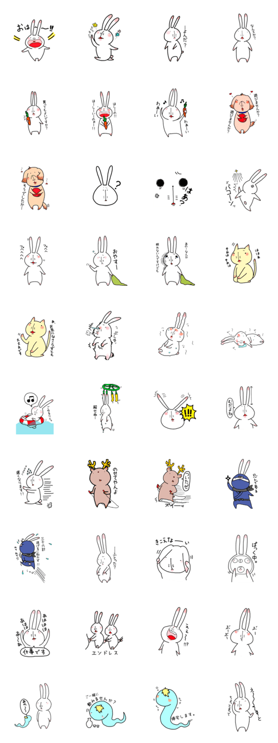 うさぎラ。 みちすけ。 コメントをどうぞ あまりやる気のないうさぎとユルユルとした動物たちがユルユルと気持ちを伝えようとするスタンプです。 このスタンプどう思う?!↓クリックで投票♪好き (0)かわいい (0)かっこいい (0)おもしろい (0)使いやすそう (0)欲しい (0)萌え (0)ほっこりする (0)おしゃれ (0)ゆるい (0)こわい (0)ウザい (0)キモい (0)ムカつく (0)持ってる (0)癒される (0)セクシー (0)個性的 (0)私は買わない (0)誰かプレゼントして! (0) 購入・プレゼントする Facebookでシェア Twitterでシェア
