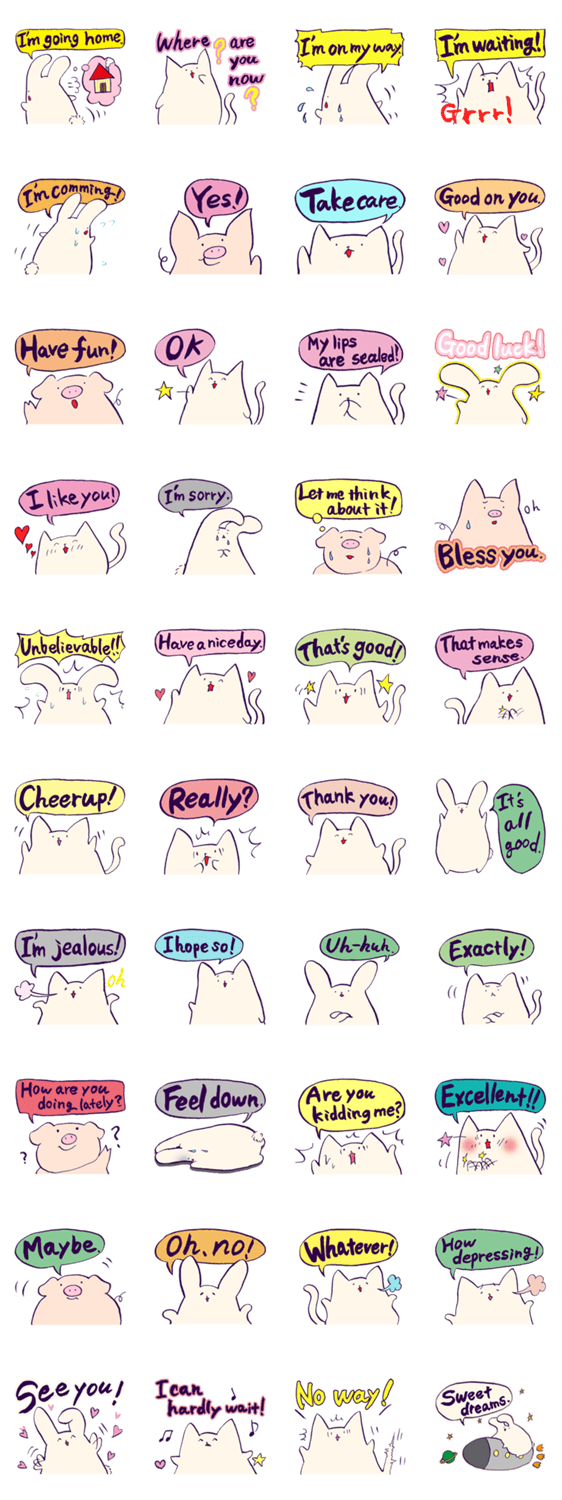 うさころうシリーズ 英語のスタンプ シャム猫 コメントをどうぞ 英語でスタンプ作成しました。海外のお友達とスタンプで会話出来ます。 このスタンプどう思う?!↓クリックで投票♪好き (0)かわいい (0)かっこいい (0)おもしろい (0)使いやすそう (0)欲しい (0)萌え (0)ほっこりする (0)おしゃれ (0)ゆるい (0)こわい (0)ウザい (0)キモい (0)ムカつく (0)持ってる (0)癒される (0)セクシー (0)個性的 (0)私は買わない (0)誰かプレゼントして! (0) 購入・プレゼントする Facebookでシェア Twitterでシェア