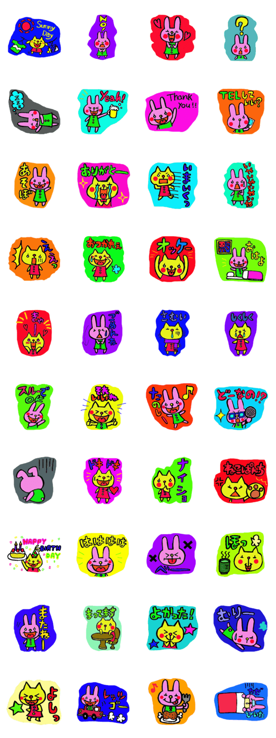 うさちとにゃんち。 saori コメントをどうぞ かわいい二匹がメッセージをカラフルに楽しく伝えてくれます。使いやすさを考えて作りました。 このスタンプどう思う?!↓クリックで投票♪好き (0)かわいい (0)かっこいい (0)おもしろい (0)使いやすそう (0)欲しい (0)萌え (0)ほっこりする (0)おしゃれ (0)ゆるい (0)こわい (0)ウザい (0)キモい (0)ムカつく (0)持ってる (0)癒される (0)セクシー (0)個性的 (0)私は買わない (0)誰かプレゼントして! (0) 購入・プレゼントする Facebookでシェア Twitterでシェア