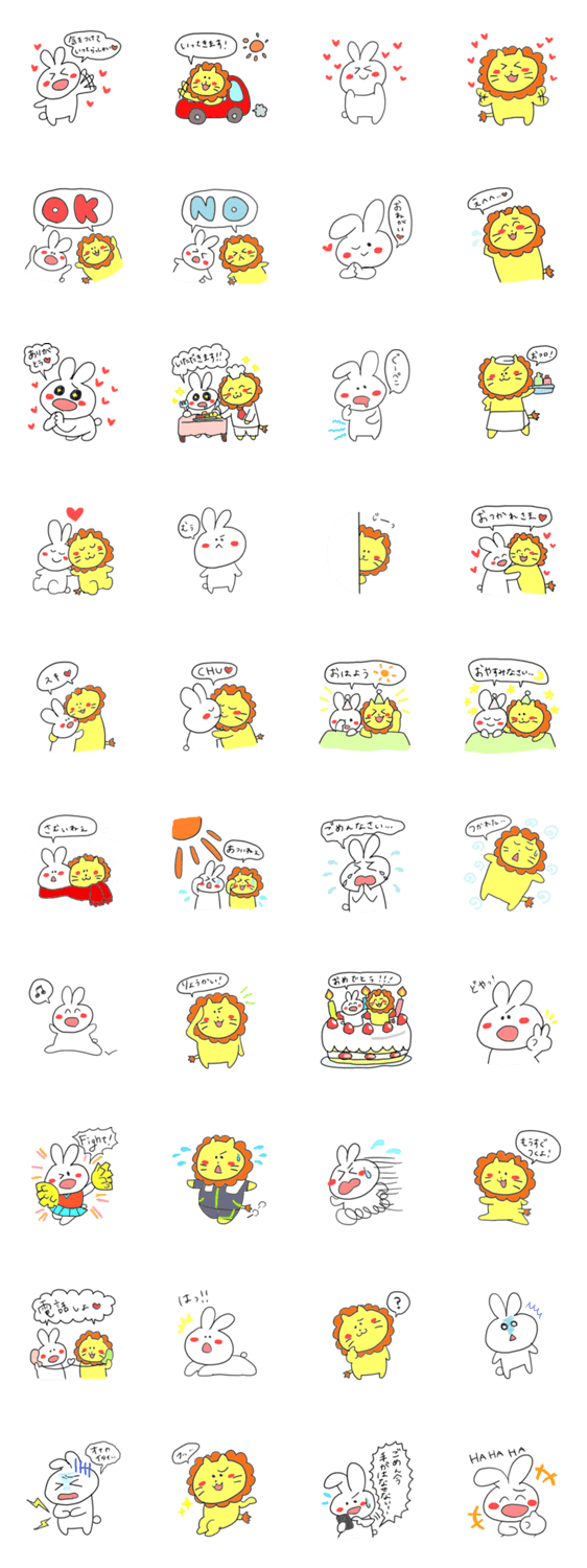 うさちゃんとライオンさん 39 コメントをどうぞ 肉食うさちゃんと草食ライオンさんのなかよしスタンプです。 このスタンプどう思う?!↓クリックで投票♪好き (0)かわいい (0)かっこいい (0)おもしろい (0)使いやすそう (0)欲しい (0)萌え (0)ほっこりする (0)おしゃれ (0)ゆるい (0)こわい (0)ウザい (0)キモい (0)ムカつく (0)持ってる (0)癒される (0)セクシー (0)個性的 (0)私は買わない (0)誰かプレゼントして! (0) 購入・プレゼントする Facebookでシェア Twitterでシェア