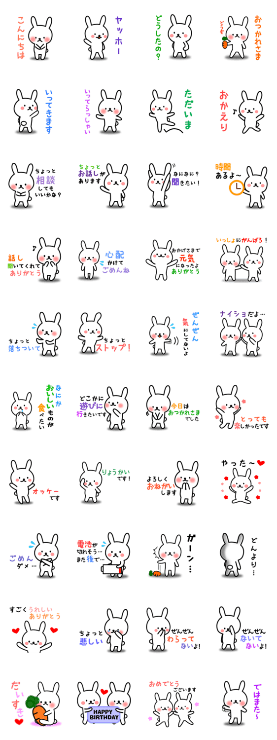 うさまろ・うさこ tohma コメントをどうぞ とってもキュートなうさまろとうさこの双子のうさぎスタンプです。 このスタンプどう思う?!↓クリックで投票♪好き (0)かわいい (0)かっこいい (0)おもしろい (0)使いやすそう (0)欲しい (0)萌え (0)ほっこりする (0)おしゃれ (0)ゆるい (0)こわい (0)ウザい (0)キモい (0)ムカつく (0)持ってる (0)癒される (0)セクシー (0)個性的 (0)私は買わない (0)誰かプレゼントして! (0) 購入・プレゼントする Facebookでシェア Twitterでシェア