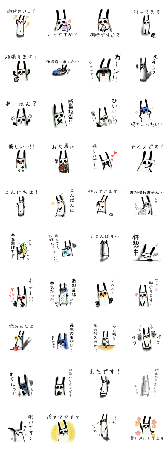 うさパンダの日常スタンプ 2 rion コメントをどうぞ ・・・うさぎ?・・・パンダ?いいえ!うさパンダです!!日常の一コマをうさぎパンダが可愛く大胆に代弁いたします。 このスタンプどう思う?!↓クリックで投票♪好き (0)かわいい (0)かっこいい (0)おもしろい (0)使いやすそう (0)欲しい (0)萌え (0)ほっこりする (0)おしゃれ (0)ゆるい (0)こわい (0)ウザい (0)キモい (0)ムカつく (0)持ってる (0)癒される (0)セクシー (0)個性的 (0)私は買わない (0)誰かプレゼントして! (0) 購入・プレゼントする Facebookでシェア Twitterでシェア