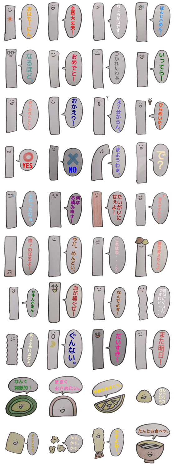 うどん君とゆかいな仲間たち carlie.G コメントをどうぞ 香川県からやってきたうどんくんと、そのゆかいな仲間たちです☆ このスタンプどう思う?!↓クリックで投票♪好き (0)かわいい (0)かっこいい (0)おもしろい (0)使いやすそう (0)欲しい (0)萌え (0)ほっこりする (0)おしゃれ (0)ゆるい (0)こわい (0)ウザい (0)キモい (0)ムカつく (0)持ってる (0)癒される (0)セクシー (0)個性的 (0)私は買わない (0)誰かプレゼントして! (0) 購入・プレゼントする Facebookでシェア Twitterでシェア
