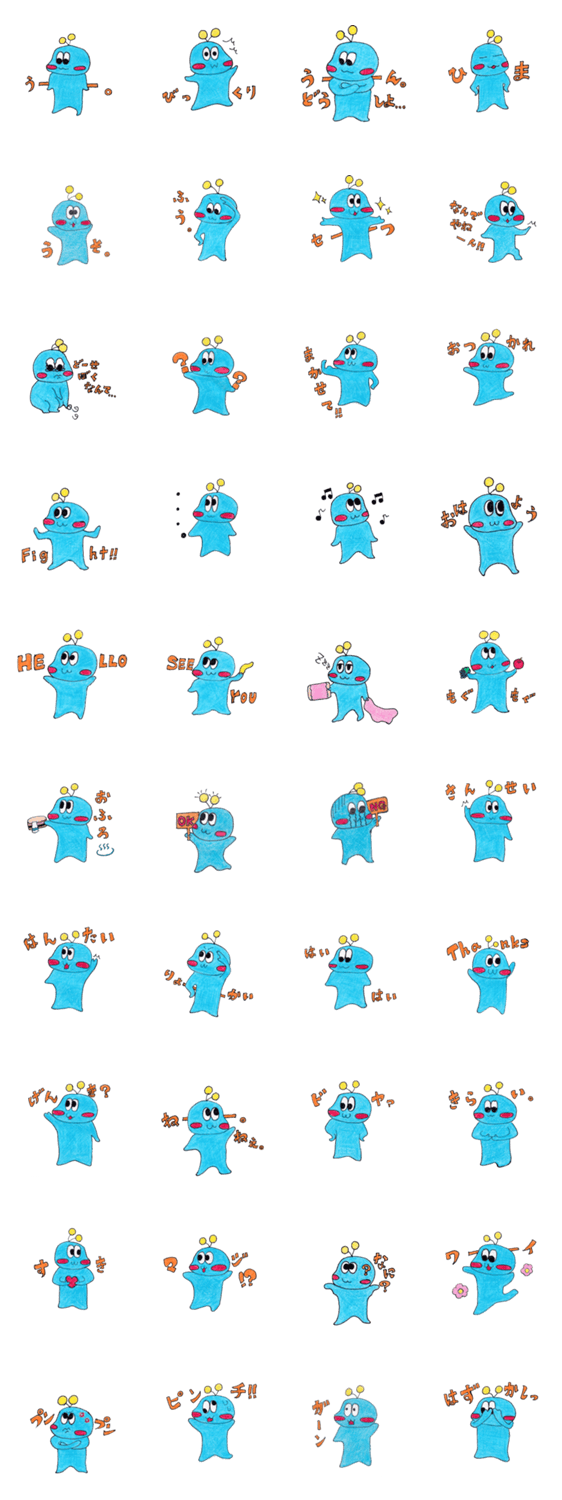 うにょにょ う〜にょ コメントをどうぞ うにょにょが日常表す喜怒哀楽がいっぱい。 このスタンプどう思う?!↓クリックで投票♪好き (0)かわいい (0)かっこいい (0)おもしろい (0)使いやすそう (0)欲しい (0)萌え (0)ほっこりする (0)おしゃれ (0)ゆるい (0)こわい (0)ウザい (0)キモい (0)ムカつく (0)持ってる (0)癒される (0)セクシー (0)個性的 (0)私は買わない (0)誰かプレゼントして! (0) 購入・プレゼントする Facebookでシェア Twitterでシェア