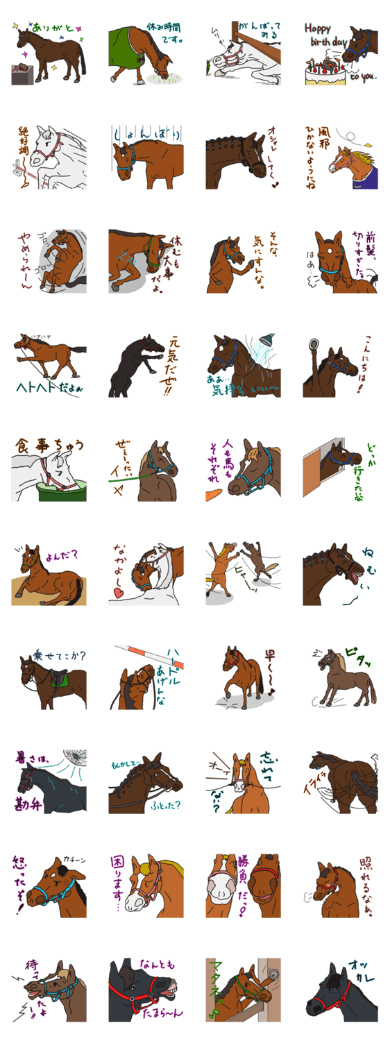 うまくいく団 からんこえ870 コメントをどうぞ 9頭の馬たちのスタンプです。三度の飯より馬好きなあなたに使っていただけたら幸いです。 このスタンプどう思う?!↓クリックで投票♪好き (0)かわいい (0)かっこいい (0)おもしろい (0)使いやすそう (0)欲しい (0)萌え (0)ほっこりする (0)おしゃれ (0)ゆるい (0)こわい (0)ウザい (0)キモい (0)ムカつく (0)持ってる (0)癒される (0)セクシー (0)個性的 (0)私は買わない (0)誰かプレゼントして! (0) 購入・プレゼントする Facebookでシェア Twitterでシェア