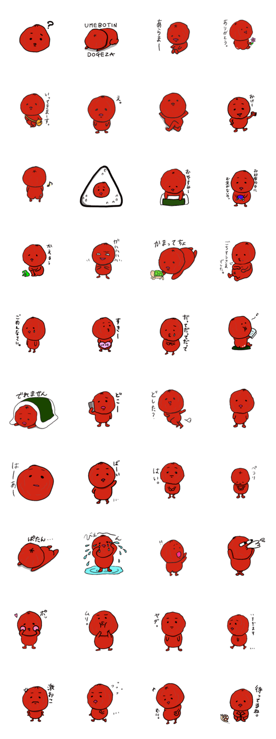 うめぼちん かむ。 コメントをどうぞ わがままな梅干のゆるキャラ、うめぼちんスタンプです。うめぼちんスタンプでゆるーくトークしちゃってください。 このスタンプどう思う?!↓クリックで投票♪好き (0)かわいい (0)かっこいい (0)おもしろい (0)使いやすそう (0)欲しい (0)萌え (0)ほっこりする (0)おしゃれ (0)ゆるい (0)こわい (0)ウザい (0)キモい (0)ムカつく (0)持ってる (0)癒される (0)セクシー (0)個性的 (0)私は買わない (0)誰かプレゼントして! (0) 購入・プレゼントする Facebookでシェア Twitterでシェア