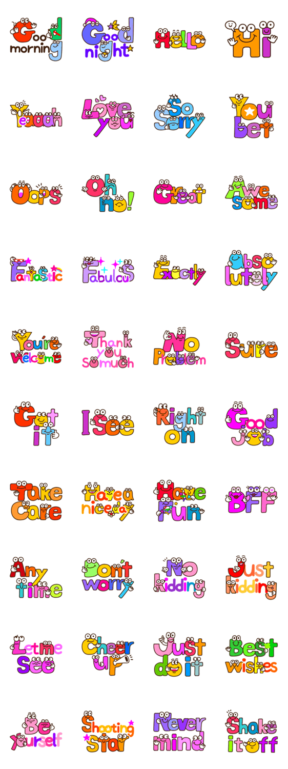 えいごできもち Vol.2 MAI コメントをどうぞ 英語のフレーズでかっこよく話しちゃおう!日本語だと言いにくい気持ちも伝わるかも。 このスタンプどう思う?!↓クリックで投票♪好き (0)かわいい (0)かっこいい (0)おもしろい (0)使いやすそう (0)欲しい (0)萌え (0)ほっこりする (0)おしゃれ (0)ゆるい (0)こわい (0)ウザい (0)キモい (0)ムカつく (0)持ってる (0)癒される (0)セクシー (0)個性的 (0)私は買わない (0)誰かプレゼントして! (0) 購入・プレゼントする Facebookでシェア Twitterでシェア