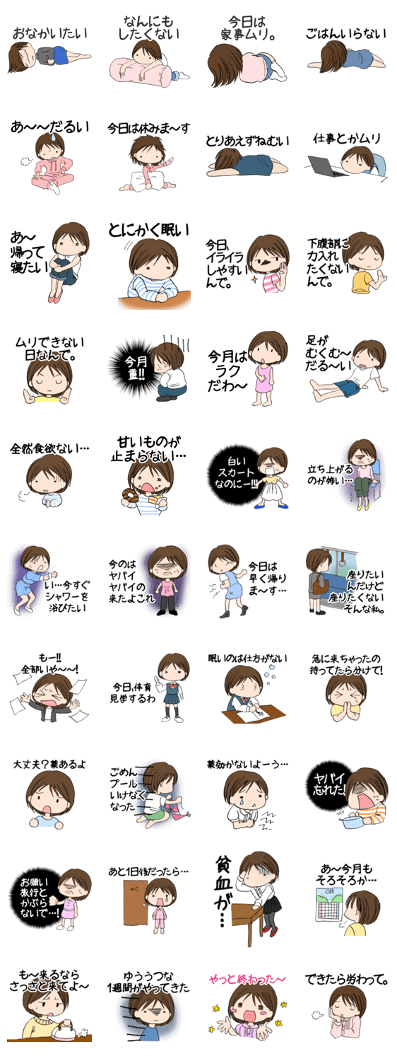 えりちゃん 女の子は辛いよ編 E&Y Produced by Webる商社 コメントをどうぞ 大人気のえりちゃん、ゆうちゃんのスタンプ第3弾!女の子にしか分からない気持ちをスタンプで表現。文字なんて打つ気力がない時はとりあえずポチッと押そう! このスタンプどう思う?!↓クリックで投票♪好き (0)かわいい (0)かっこいい (0)おもしろい (0)使いやすそう (0)欲しい (0)萌え (0)ほっこりする (0)おしゃれ (0)ゆるい (0)こわい (0)ウザい (0)キモい (0)ムカつく (0)持ってる (0)癒される (0)セクシー (0)個性的 (0)私は買わない (0)誰かプレゼントして! (0) 購入・プレゼントする Facebookでシェア Twitterでシェア
