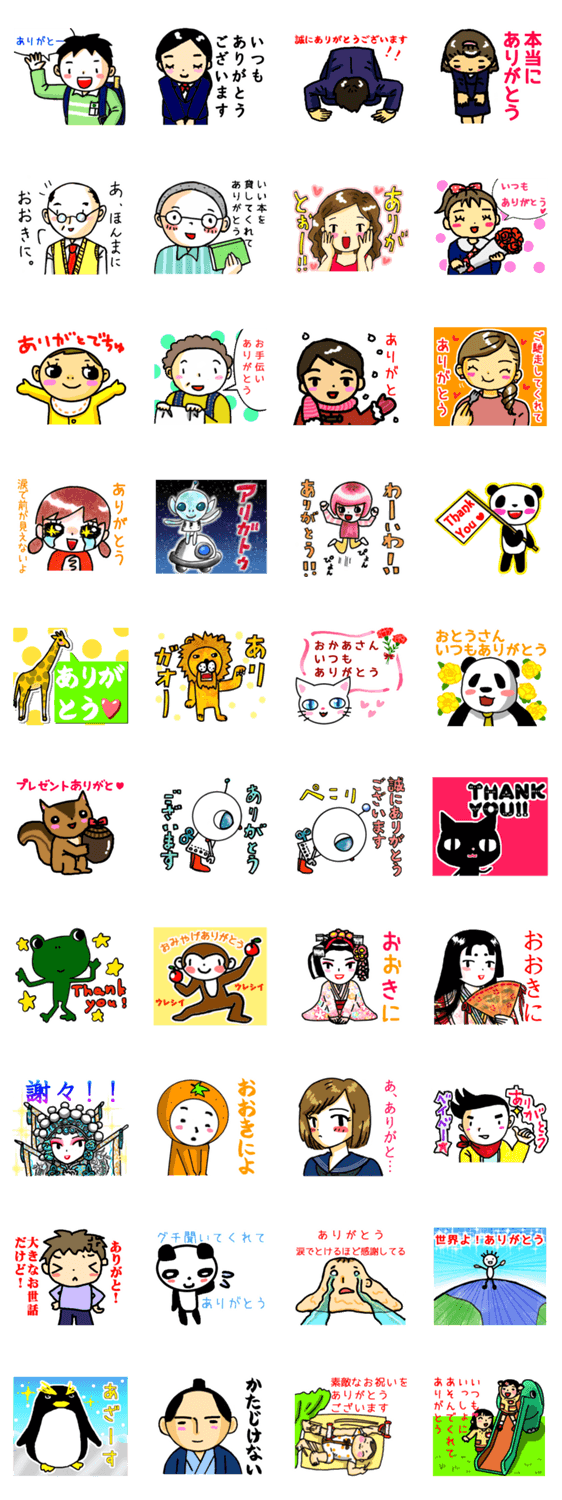 おおきにありがとう Miki H. コメントをどうぞ いろんな「ありがとう」の絵を描きました。作者は関西人なので「おおきに」もまざってます。感謝の気持ちをぜひ大切な人へ。 このスタンプどう思う?!↓クリックで投票♪好き (0)かわいい (0)かっこいい (0)おもしろい (0)使いやすそう (0)欲しい (0)萌え (0)ほっこりする (0)おしゃれ (0)ゆるい (0)こわい (0)ウザい (0)キモい (0)ムカつく (0)持ってる (0)癒される (0)セクシー (0)個性的 (0)私は買わない (0)誰かプレゼントして! (0) 購入・プレゼントする Facebookでシェア Twitterでシェア