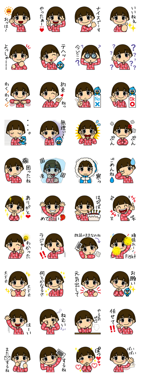 おかっぱ頭のニーナちゃん satomin コメントをどうぞ おかっぱ頭がトレードマークのニーナちゃん。「だいじよーぶ」「何とかなるさ」「元気出して」など連続使用も出来るように作ってみました。 このスタンプどう思う?!↓クリックで投票♪好き (0)かわいい (1)かっこいい (0)おもしろい (0)使いやすそう (0)欲しい (0)萌え (0)ほっこりする (0)おしゃれ (0)ゆるい (0)こわい (0)ウザい (0)キモい (0)ムカつく (0)持ってる (0)癒される (1)セクシー (0)個性的 (0)私は買わない (0)誰かプレゼントして! (0) 購入・プレゼントする Facebookでシェア Twitterでシェア
