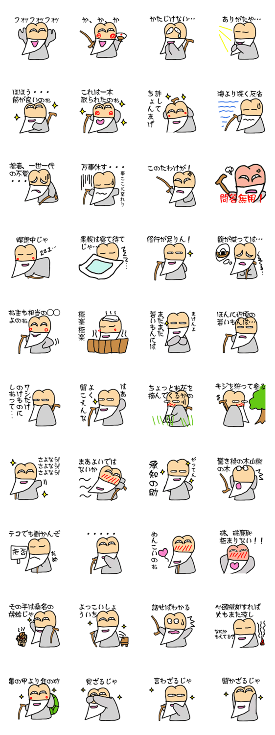 おじいちゃんは語る ポチタロウ コメントをどうぞ うちのおじいちゃんがよく使う言い回しを、セリフ付きのスタンプにしました。 このスタンプどう思う?!↓クリックで投票♪好き (0)かわいい (0)かっこいい (0)おもしろい (0)使いやすそう (0)欲しい (0)萌え (0)ほっこりする (0)おしゃれ (0)ゆるい (0)こわい (0)ウザい (0)キモい (0)ムカつく (0)持ってる (0)癒される (0)セクシー (0)個性的 (0)私は買わない (0)誰かプレゼントして! (0) 購入・プレゼントする Facebookでシェア Twitterでシェア