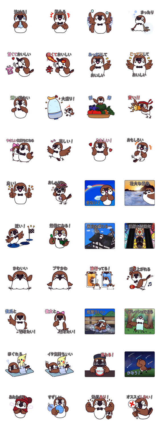 おすすめすずめ 株式会社アートスケープ コメントをどうぞ オススメ雀は日常におけるオススメをおすすめする雀のスタンプです。普段の生活、旅行、ご飯、約束の決め事の会話など家族や友達におすすめする時オススメ雀がお供します。 このスタンプどう思う?!↓クリックで投票♪好き (0)かわいい (0)かっこいい (0)おもしろい (0)使いやすそう (0)欲しい (0)萌え (0)ほっこりする (0)おしゃれ (0)ゆるい (0)こわい (0)ウザい (0)キモい (0)ムカつく (0)持ってる (0)癒される (0)セクシー (0)個性的 (0)私は買わない (0)誰かプレゼントして! (0) 購入・プレゼントする Facebookでシェア Twitterでシェア
