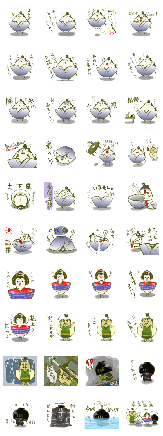 おちゃわん侍 さなぎ工房 コメントをどうぞ おちゃわん侍とその仲間たちのちょっぴり和風なスタンプです。おちゃわん侍は小憎たらしい武士ですが、どうぞご贔屓に。富士山、天ぷら、おちゃわん侍。 このスタンプどう思う?!↓クリックで投票♪好き (0)かわいい (0)かっこいい (0)おもしろい (0)使いやすそう (0)欲しい (0)萌え (0)ほっこりする (0)おしゃれ (0)ゆるい (0)こわい (0)ウザい (0)キモい (0)ムカつく (0)持ってる (0)癒される (0)セクシー (0)個性的 (0)私は買わない (0)誰かプレゼントして! (0) 購入・プレゼントする Facebookでシェア Twitterでシェア