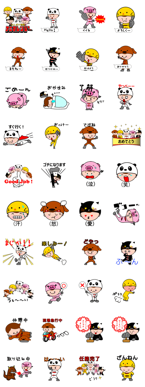 おとぼけ戦隊 アニマレンジャー けんいち コメントをどうぞ ちょっとドジなレンジャーです。パンダ、ヒヨコ、ブタ、イヌ、ネコのヘルメットをかぶって戦います。5人揃えば世界最強のレンジャーです。 このスタンプどう思う?!↓クリックで投票♪好き (0)かわいい (0)かっこいい (0)おもしろい (0)使いやすそう (0)欲しい (0)萌え (0)ほっこりする (0)おしゃれ (0)ゆるい (0)こわい (0)ウザい (0)キモい (0)ムカつく (0)持ってる (0)癒される (0)セクシー (0)個性的 (0)私は買わない (0)誰かプレゼントして! (0) 購入・プレゼントする Facebookでシェア Twitterでシェア