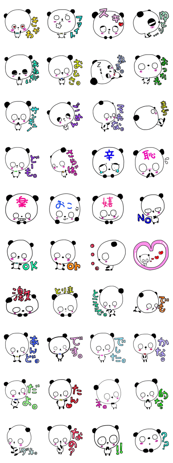 おとぼけ文字パンダたん。 まかろんべりぃ。 コメントをどうぞ パンダスタンプを繋げて文章にしたり、他のスタンプと繋げてみたり、語尾スタンプで敬語にかえてみたり、使い方色々!自分流で楽しんで使ってください。 このスタンプどう思う?!↓クリックで投票♪好き (0)かわいい (0)かっこいい (0)おもしろい (0)使いやすそう (0)欲しい (0)萌え (0)ほっこりする (0)おしゃれ (0)ゆるい (0)こわい (0)ウザい (0)キモい (0)ムカつく (0)持ってる (0)癒される (0)セクシー (0)個性的 (0)私は買わない (0)誰かプレゼントして! (0) 購入・プレゼントする Facebookでシェア Twitterでシェア