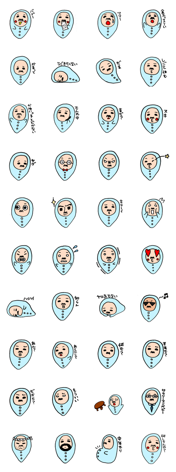 おやじベビー hayato コメントをどうぞ 男はいつまでも赤ちゃん。歳をとっても変わりません。 このスタンプどう思う?!↓クリックで投票♪好き (0)かわいい (0)かっこいい (0)おもしろい (0)使いやすそう (0)欲しい (0)萌え (0)ほっこりする (0)おしゃれ (0)ゆるい (0)こわい (0)ウザい (0)キモい (0)ムカつく (0)持ってる (0)癒される (0)セクシー (0)個性的 (0)私は買わない (0)誰かプレゼントして! (0) 購入・プレゼントする Facebookでシェア Twitterでシェア