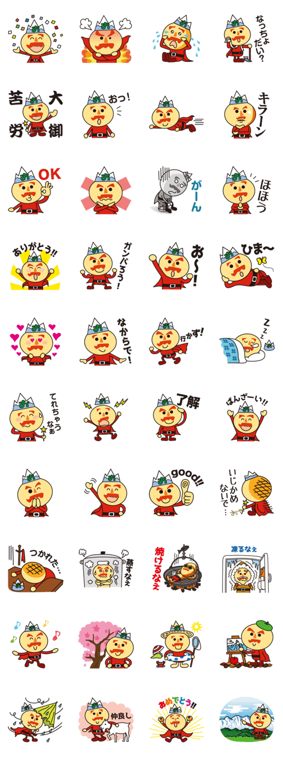 おやキング 小川村観光協会 コメントをどうぞ おやキングは長野県小川村のご当地キャラクターです。顔は小川村のおいしい「おやき」でできています!(※パンではありません) このスタンプどう思う?!↓クリックで投票♪好き (4)かわいい (0)かっこいい (0)おもしろい (2)使いやすそう (0)欲しい (2)萌え (0)ほっこりする (1)おしゃれ (0)ゆるい (0)こわい (0)ウザい (0)キモい (0)ムカつく (3)持ってる (0)癒される (0)セクシー (0)個性的 (0)私は買わない (0)誰かプレゼントして! (0) 購入・プレゼントする Facebookでシェア Twitterでシェア