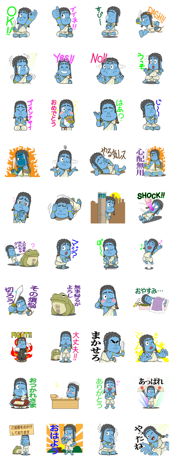 おフドーくん Masahito Fukada コメントをどうぞ 日本の仏像「不動明王」をキャラクター化!ふだんは無表情なおフドーくんだが、右手の剣で人の煩悩を断ち切り左手の縄で正しい道に引き戻す、熱くておせっかいな仏像だ。 このスタンプどう思う?!↓クリックで投票♪好き (0)かわいい (0)かっこいい (0)おもしろい (0)使いやすそう (0)欲しい (0)萌え (0)ほっこりする (0)おしゃれ (0)ゆるい (0)こわい (0)ウザい (0)キモい (0)ムカつく (0)持ってる (0)癒される (0)セクシー (0)個性的 (0)私は買わない (0)誰かプレゼントして! (0) 購入・プレゼントする Facebookでシェア Twitterでシェア