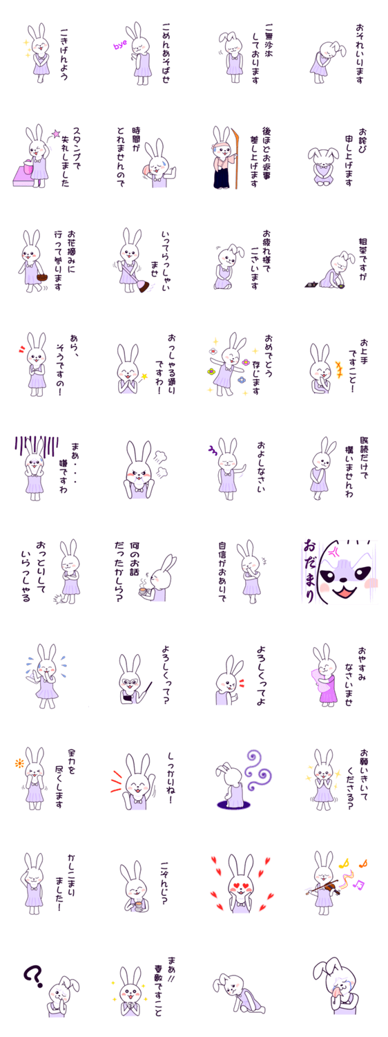 お上品なうさぎ ZETA@hattch コメントをどうぞ 宇佐木家の長女、”はるか”は丁寧に育てられたせいか可愛いお嬢様気質。基本的に敬語なので目上の方とのやりとりにも使いやすいスタンプです。 このスタンプどう思う?!↓クリックで投票♪好き (0)かわいい (0)かっこいい (0)おもしろい (0)使いやすそう (0)欲しい (0)萌え (0)ほっこりする (0)おしゃれ (0)ゆるい (0)こわい (0)ウザい (0)キモい (0)ムカつく (0)持ってる (0)癒される (0)セクシー (0)個性的 (0)私は買わない (0)誰かプレゼントして! (0) 購入・プレゼントする Facebookでシェア Twitterでシェア