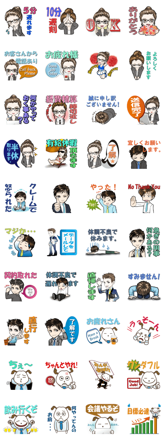 お仕事スタンプ shofujiki コメントをどうぞ 仕事のいろんな場面で使えるスタンプ登場。上司と営業マンと事務スタッフの3人がビジネスの色んなシーンを発信します。 このスタンプどう思う?!↓クリックで投票♪好き (0)かわいい (0)かっこいい (0)おもしろい (0)使いやすそう (0)欲しい (0)萌え (0)ほっこりする (0)おしゃれ (0)ゆるい (0)こわい (0)ウザい (0)キモい (0)ムカつく (0)持ってる (0)癒される (0)セクシー (0)個性的 (0)私は買わない (0)誰かプレゼントして! (0) 購入・プレゼントする Facebookでシェア Twitterでシェア