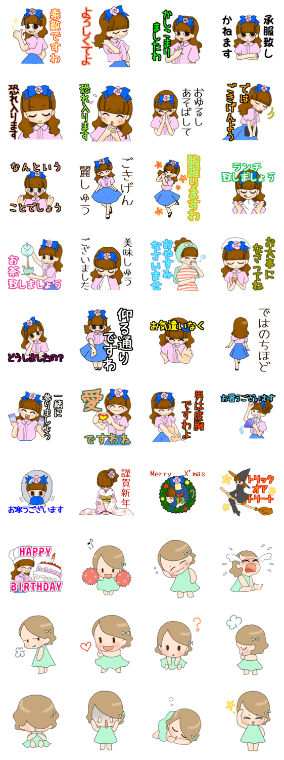 お嬢様ことば Amy コメントをどうぞ お嬢様の美しい日本語をスタンプにしました。季節のあいさつと、お嬢様の赤ちゃん時代のセリフなしスタンプ付き。女の子向けです。お姫様気分で使ってみてね。 このスタンプどう思う?!↓クリックで投票♪好き (0)かわいい (0)かっこいい (0)おもしろい (0)使いやすそう (0)欲しい (0)萌え (0)ほっこりする (0)おしゃれ (0)ゆるい (0)こわい (0)ウザい (0)キモい (0)ムカつく (0)持ってる (0)癒される (0)セクシー (0)個性的 (0)私は買わない (0)誰かプレゼントして! (0) 購入・プレゼントする Facebookでシェア Twitterでシェア