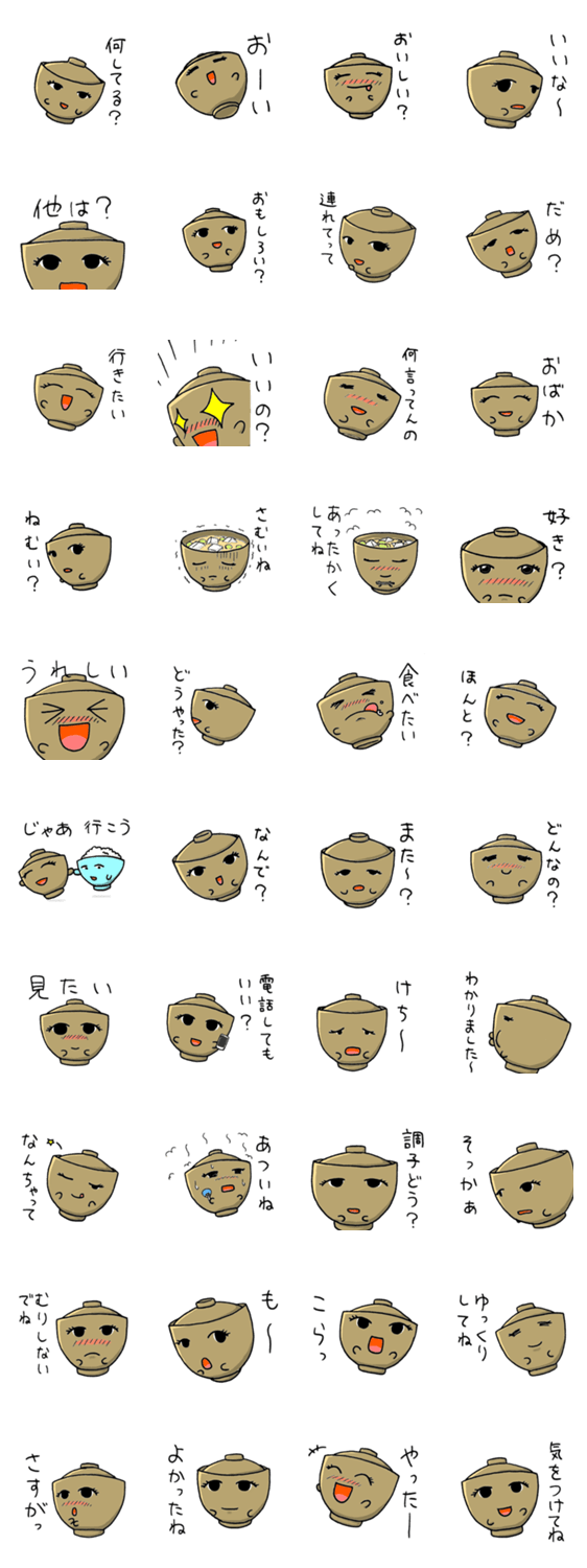 お椀ちゃんの中身はお味噌汁。 kenyago コメントをどうぞ お味噌汁よりもお椀がメインなのです。 このスタンプどう思う?!↓クリックで投票♪好き (0)かわいい (0)かっこいい (0)おもしろい (0)使いやすそう (0)欲しい (0)萌え (0)ほっこりする (0)おしゃれ (0)ゆるい (0)こわい (0)ウザい (0)キモい (0)ムカつく (0)持ってる (0)癒される (0)セクシー (0)個性的 (0)私は買わない (0)誰かプレゼントして! (0) 購入・プレゼントする Facebookでシェア Twitterでシェア