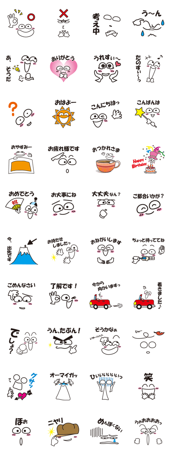 お顔くん 2 おくじゅん コメントをどうぞ 透明人間のお顔くん、第二弾!さらに使いやすくなって登場です。仕事・遊び、いろいろなシーンに笑いと息抜きを届けましょう♪ このスタンプどう思う?!↓クリックで投票♪好き (0)かわいい (0)かっこいい (0)おもしろい (0)使いやすそう (0)欲しい (0)萌え (0)ほっこりする (0)おしゃれ (0)ゆるい (0)こわい (0)ウザい (0)キモい (0)ムカつく (0)持ってる (0)癒される (0)セクシー (0)個性的 (0)私は買わない (0)誰かプレゼントして! (0) 購入・プレゼントする Facebookでシェア Twitterでシェア